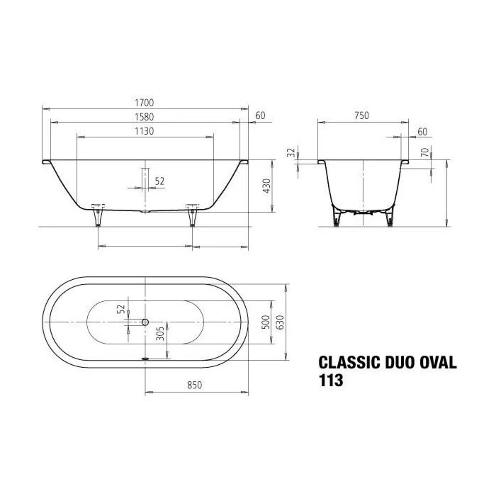 Bồn tắm KALDEWEI CLASSIC DUO OVAL 113 – Drop in