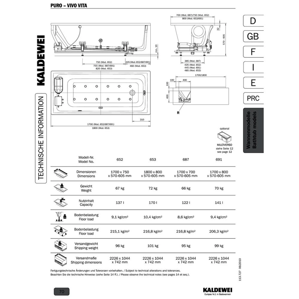 Bồn tắm massage KALDEWEI PURO 652 VA