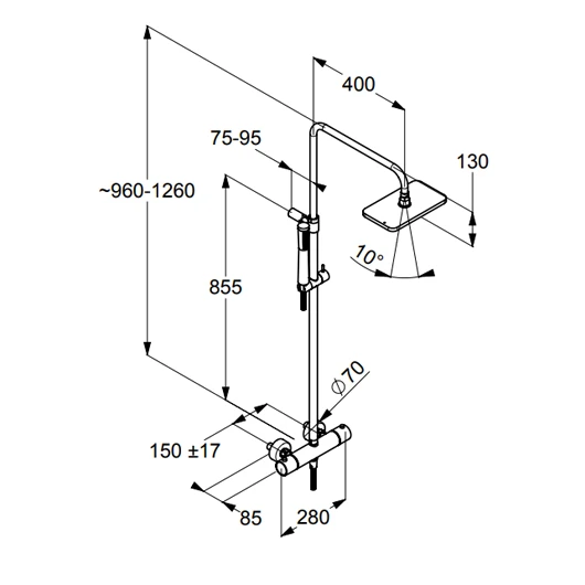 Thiết kế: Gắn tường – Cần sen (Nâng-Hạ-Xoay)