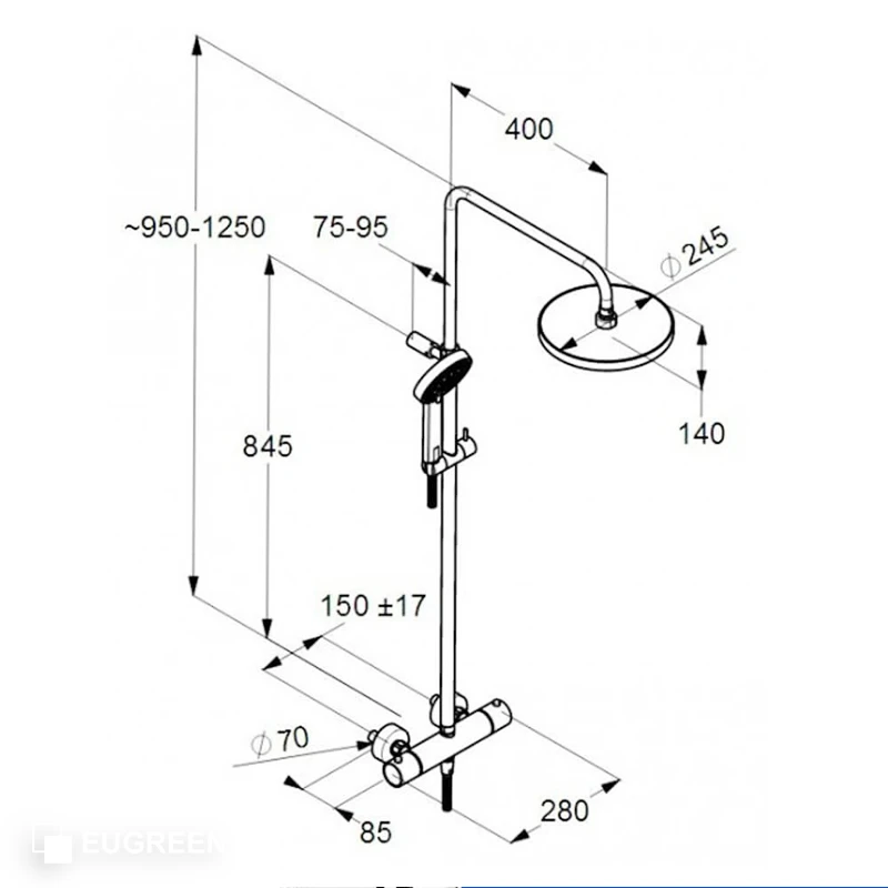 Thiết kế: Gắn tường – Cần sen (Nâng-Hạ-Xoay)