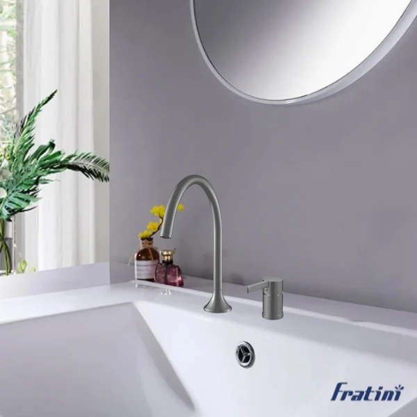 Vòi rửa mặt lắp bàn đá nóng lạnh Fratini Milano Grey model 39041722GY với thiết kế phong cách Italia , kết hợp với công nghệ mạ tiên tiến tạo ra sản phẩm chất lượng phù hợp với không gian phòng tắm hiện đại