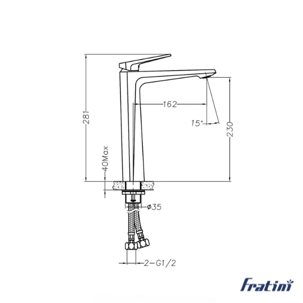 Thông số kỹ thuật của vòi chậu rửa mặt dáng cao Fratini Pisa Grey model 39040302GY