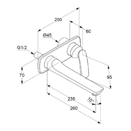 Đầu vòi: Điều chỉnh góc chảy góc 10°