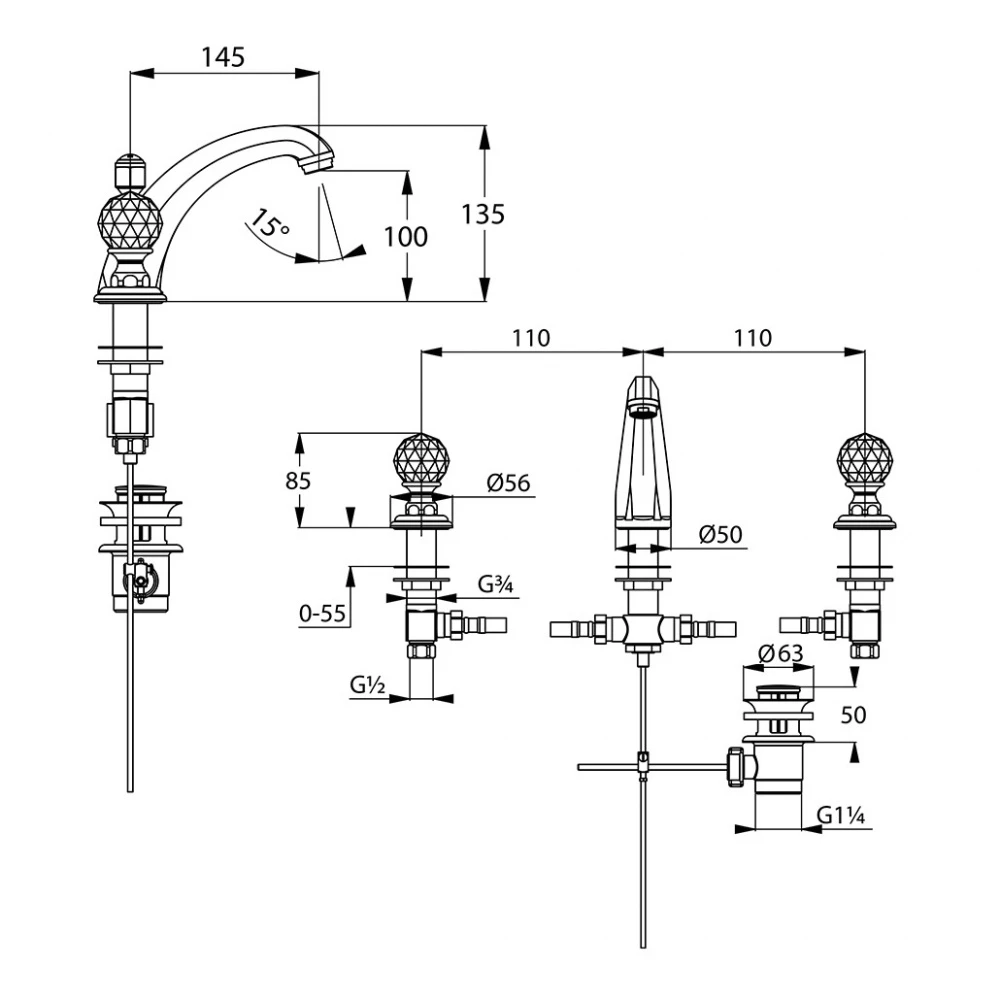 Gồm Cổ xả chậu G1-1/4