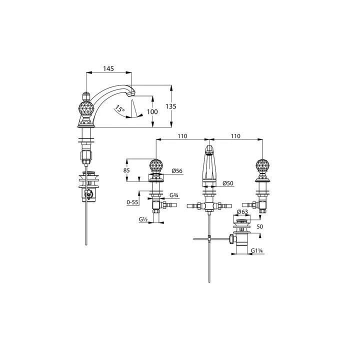 Thiết kế: Kiểu cổ điển, vòi thấp – 3 lỗ nóng lạnh