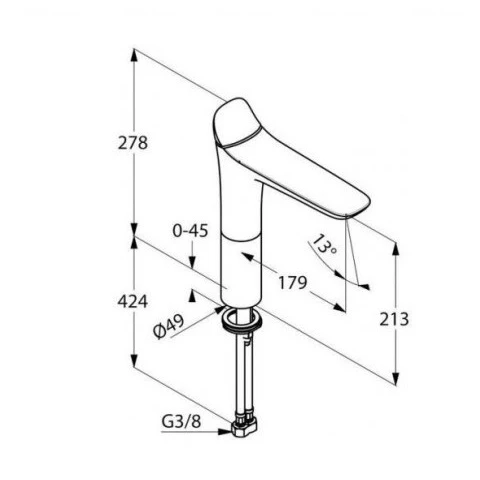 Đầu vòi: Điều chỉnh dòng chảy góc 13°