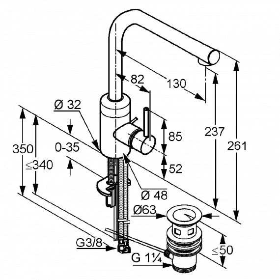 Thiết kế: Vòi cao – 1 lỗ nóng lạnh