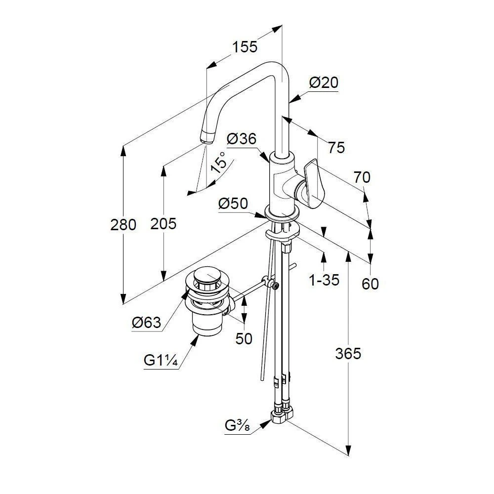 Đầu vòi: điều chỉnh dòng chảy góc 15°